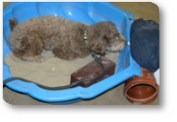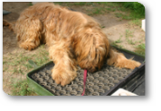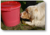 Die Grundlagen vom SchaSu werden mit positiver Verstärkung und Markersignal vermittelt. Ziel ist es, im Brockenhaufen erfolgreich auf Schatzsuche zu gehen.
